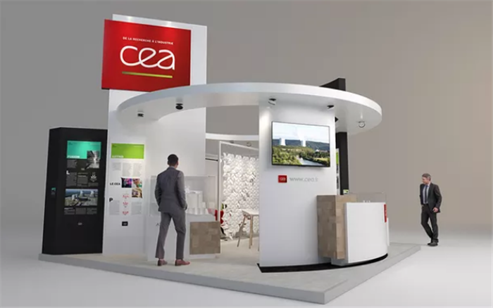 CEA本次的新能源展台设计,采用现代风格设计,主体以白色为主,加上公司的红色LOGO,灯光的搭配,显得整个展台特别吸引眼球,简洁高端的形象。