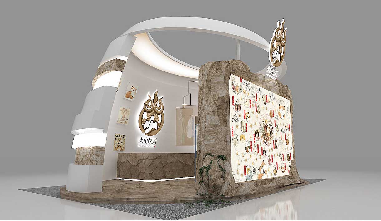 火山映画本次的动漫展会设计搭建中,采用了现代中国风设计,造型以“椭圆形”元素设计,主体以白色和大理石相互搭配,展台呈现出了一种独特、现代中国风的形象,正好符合企业的产品形象。