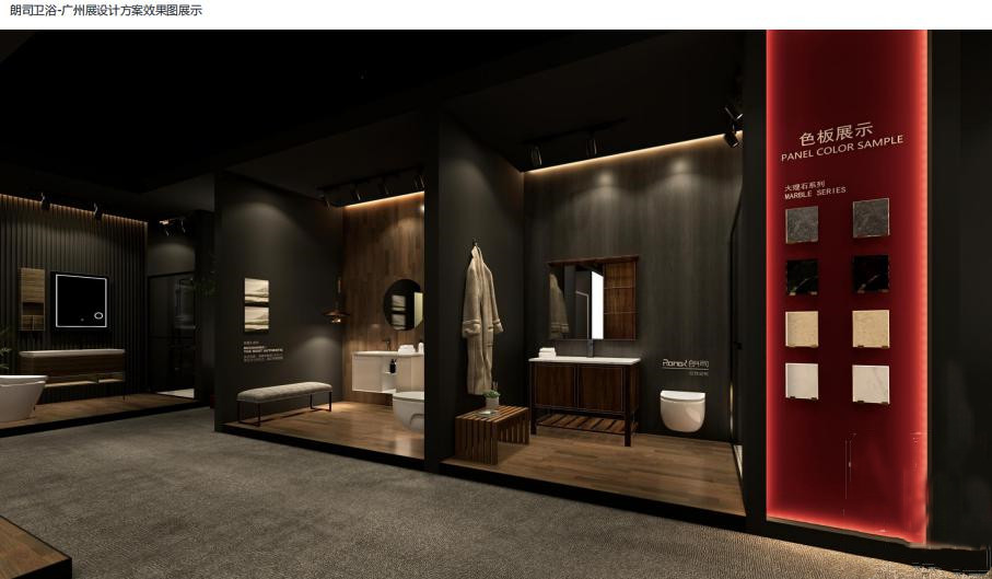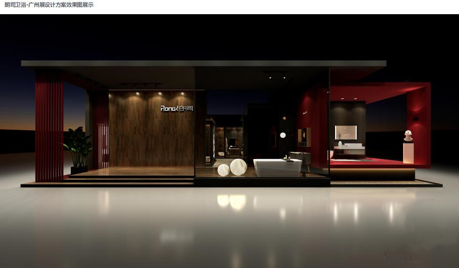 契合朗司卫浴品牌形象和产品特性,此次的建博会展台设计以白色调为主,采用框架结构,再搭配灯具灯光的效果,衬托出展位绚丽、明亮的氛围,突出一种简约、个性的时尚品味。