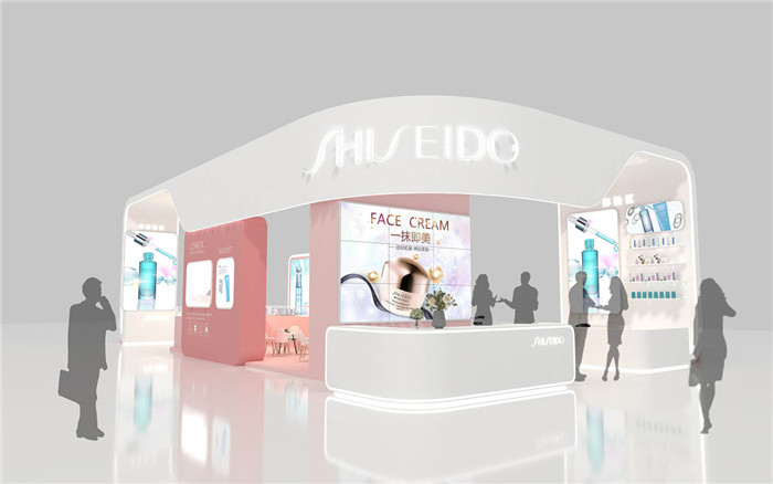 资生堂在广州美博会搭建中以开放式设计、纯白色为主、粉色为辅打造出了一种大品牌产品的质感形象。同时独特的风格形象,更能吸引众多客户。