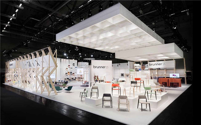 为了更好的体现brunner的品牌感,家博会搭建设计以白色为主,传递简洁、个性、舒适的家具设计感。