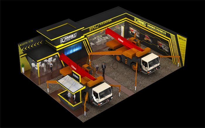响箭重工在本次上海宝马展会搭建中,主要以半开式布置,主体以黑色、黄色搭配,表现出产品的重工机械类产品,同时也为了重点突出企业的LOGO形象。展位上划分了舒适的洽谈区,提供参观者在展会上的参展体验。产品展示区用沙面设计还原产品适用现场真实。整个展位开放、简约、气派,创新、让人感觉十分舒适、自由。