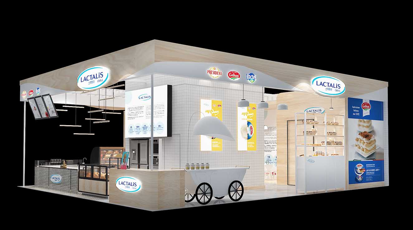 LACTALIS在本次烘焙展览设计中,采用现代风格设计,简约的白色搭配原木色设计,使整个展台呈现出了明亮、简约、休闲的气氛。正好,体现了产品的形象。