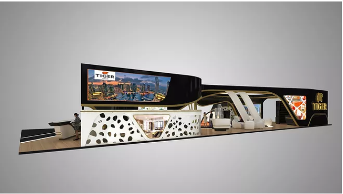 虎牌公司本次进博会展台设计搭建采用独特的设计,与众不同的设计理念,使展台更具有辨识度,整体造型休闲时尚大气。