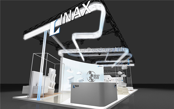 卫浴展会设计装修中,伊奈洁具采用了现代简约风格设计,主体以白色为主,使用发光吊顶创意设计,增添新意同时,也展示出了企业产品的时尚、独特。展台整体呈现出了简约、大气、高品质的大品牌形象。