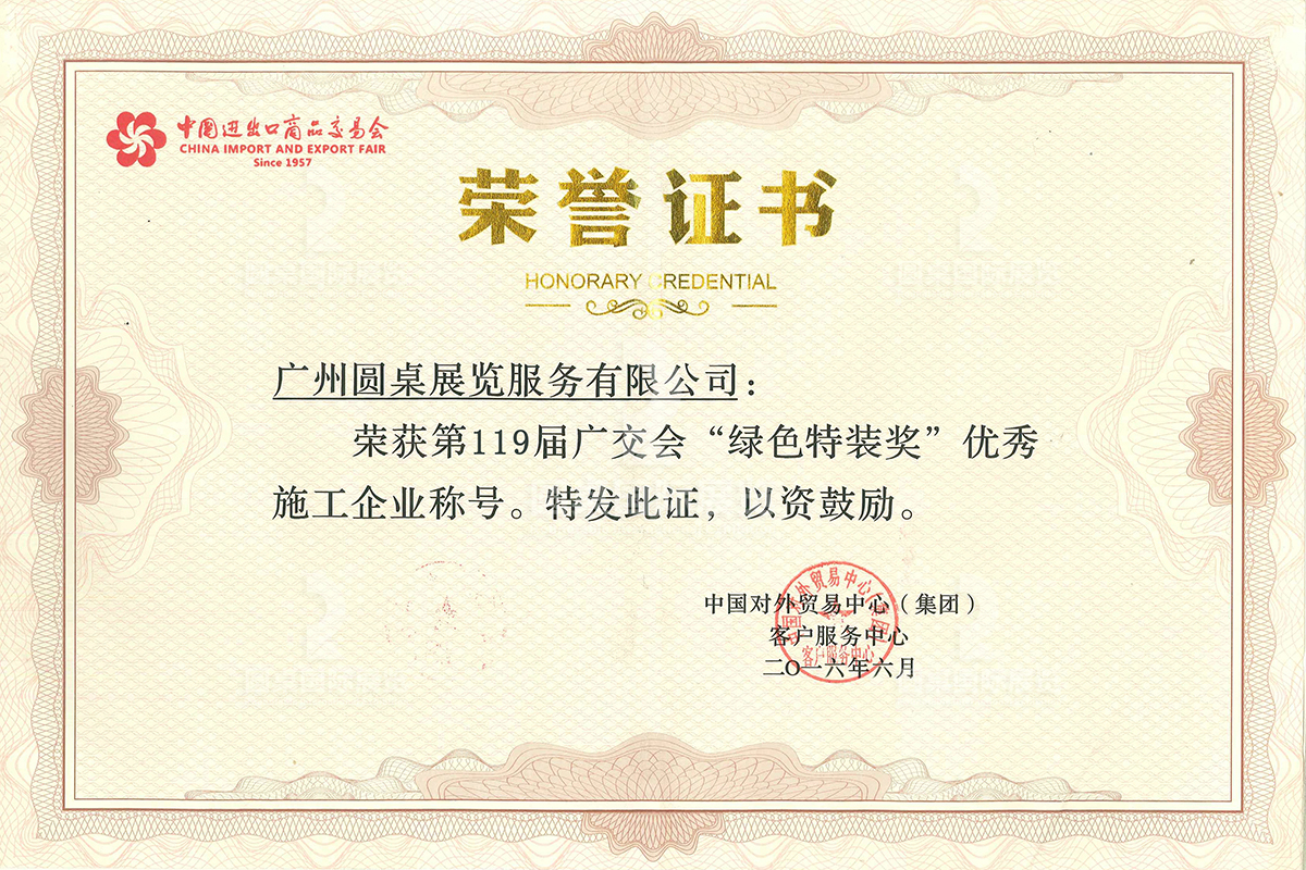 第126届广交会绿色展位奖施工企业奖