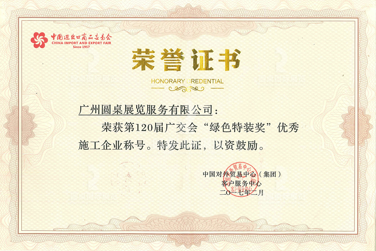 第120届广交会绿色特装奖